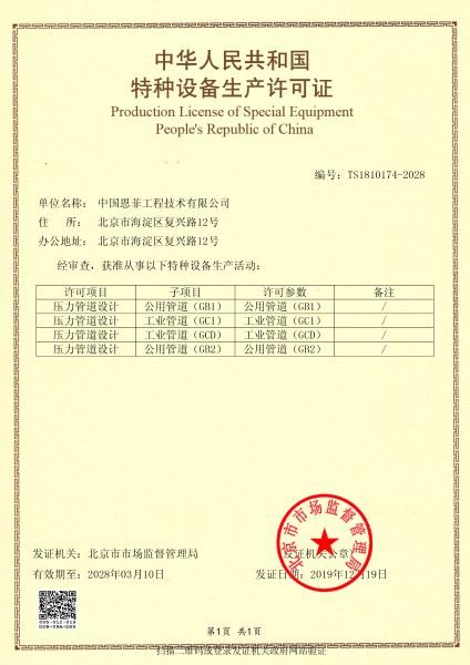 • 中華人民共和國(guó)特種設(shè)備生產(chǎn)許可證(壓力管道)