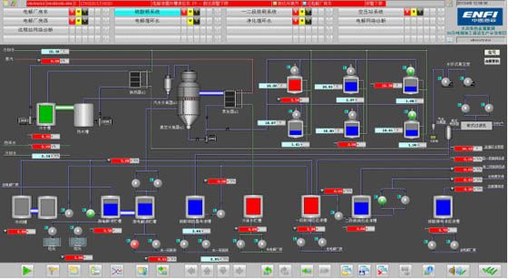 多晶硅生產(chǎn)技術(shù)是中國恩菲具有自主知識(shí)產(chǎn)權(quán)的高科技、核心專長技術(shù),填補(bǔ)了國內(nèi)空白,打破了國外的技術(shù)壟斷。多晶硅生產(chǎn)自動(dòng)化控制系統(tǒng)從系統(tǒng)集成、軟件組態(tài)、調(diào)試、投運(yùn)全過程均自主開發(fā)完成,采用DCS控制系統(tǒng)加智能控制軟件包,使用PID控制、復(fù)雜控制及專家智能控制等控制策略,建立復(fù)雜時(shí)序調(diào)控和安全保護(hù)連鎖控制裝置,融合專家智能控制策略的提純塔非線性控制方案,保證了多晶硅生產(chǎn)穩(wěn)定、可靠、安全運(yùn)行。