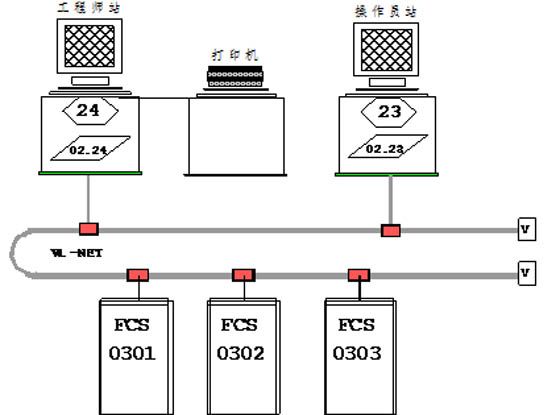 6000KW電站DCS控制系統(tǒng)由三個(gè)控制站、一個(gè)工程師站及一個(gè)操作員站構(gòu)成??刂葡到y(tǒng)構(gòu)成圖如下: