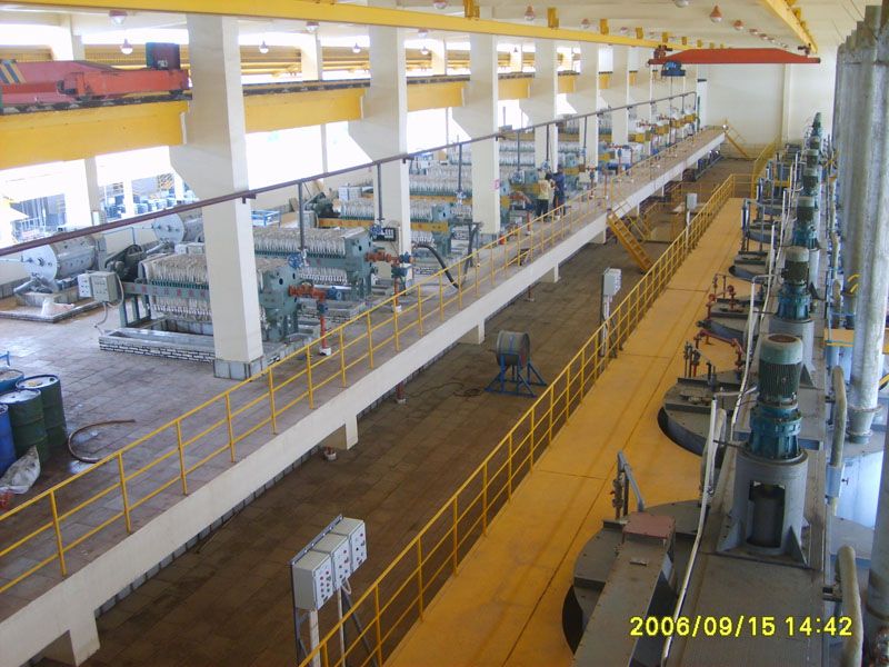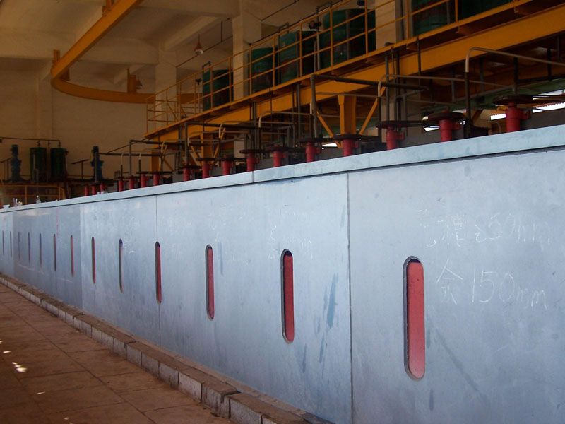 在萃取設(shè)備上,多數(shù)使用混合澄清式萃取箱(包括淺池和深池式),個別項目用過離心萃取器,如金川3萬噸加壓浸出項目;在萃取箱材質(zhì)上,可選擇PVC板、FRP、鋼襯FRP、砼襯FRP、不銹鋼等,各材質(zhì)萃取箱中國恩菲均涉及,且投入使用;在萃取箱規(guī)格上,恩菲所設(shè)計的,小至混合室尺寸150X150mm,大至直徑2000m,在鎳鈷精煉項目均已投產(chǎn)使用。
